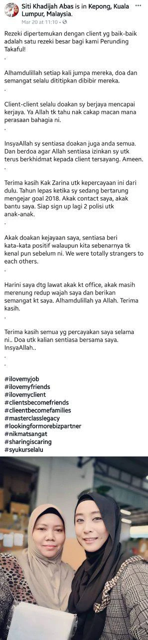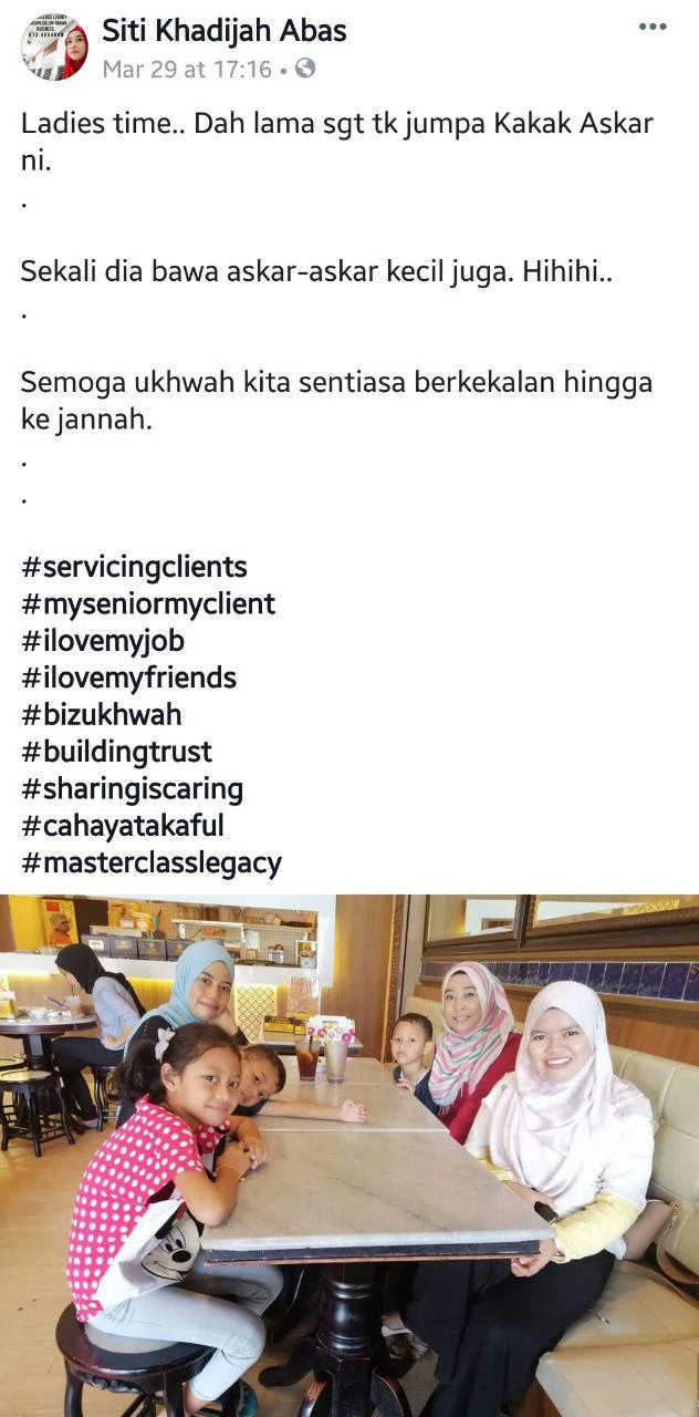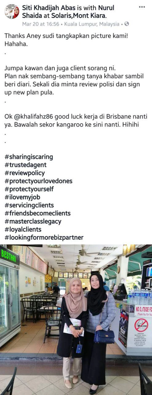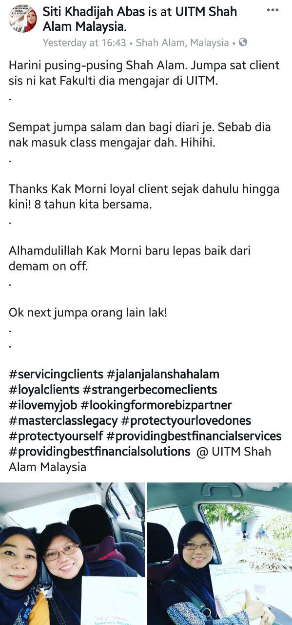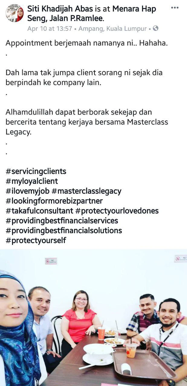 Saya merupakan seorang Perunding Kewangan (Takaful) sejak 2011 sehingga kini. Bernaung di bawah agensi Masterclass Legacy di Damansara Intan, Petaling Jaya Selangor secara sepenuh masa dan sudah berpengalaman menyelia pelbagai jenis claim untuk pelanggan saya di seluruh Malaysia.